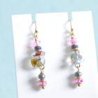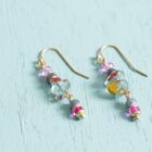 fijne handbeschilderde glasparels +/- 3mm en 8mm in blauw en framboos tinten tot lengte +/- 35mm ( ook bijpassende halsketting verkrijgbaar )