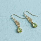 groene vergulde glasdruppel met filigraan element tot lengte +/- 30 mm